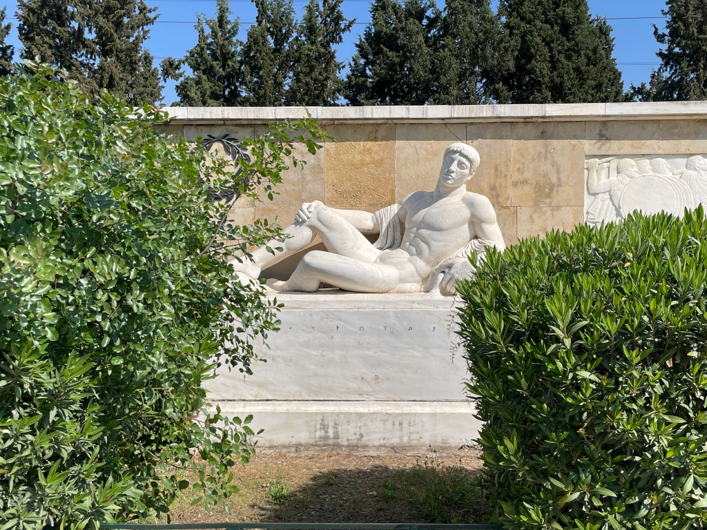 Day 3 was A LOT. First stop was the monument to one of Greece’s most important historical battles, yet still grieved, the Battle of Thermopyles in the year 480 B.C. Remember Esther from the Hebrew Scriptures? Well, the notorious Xerxes who was going to kill Esther’s people landed on the coast of Greece. The historian Herodotus claims that the Persians had 1,700,000 troops and took 300 Spartans and 700 Thespians, under the leadership of Leonides, the King of the Spartans. Xerxes commanded the Spartans to give up their weapons. Leonides replied with the now famous phrase COME AND GET THEM. Unfortunately, a misadopted phrase used in the U.S.
