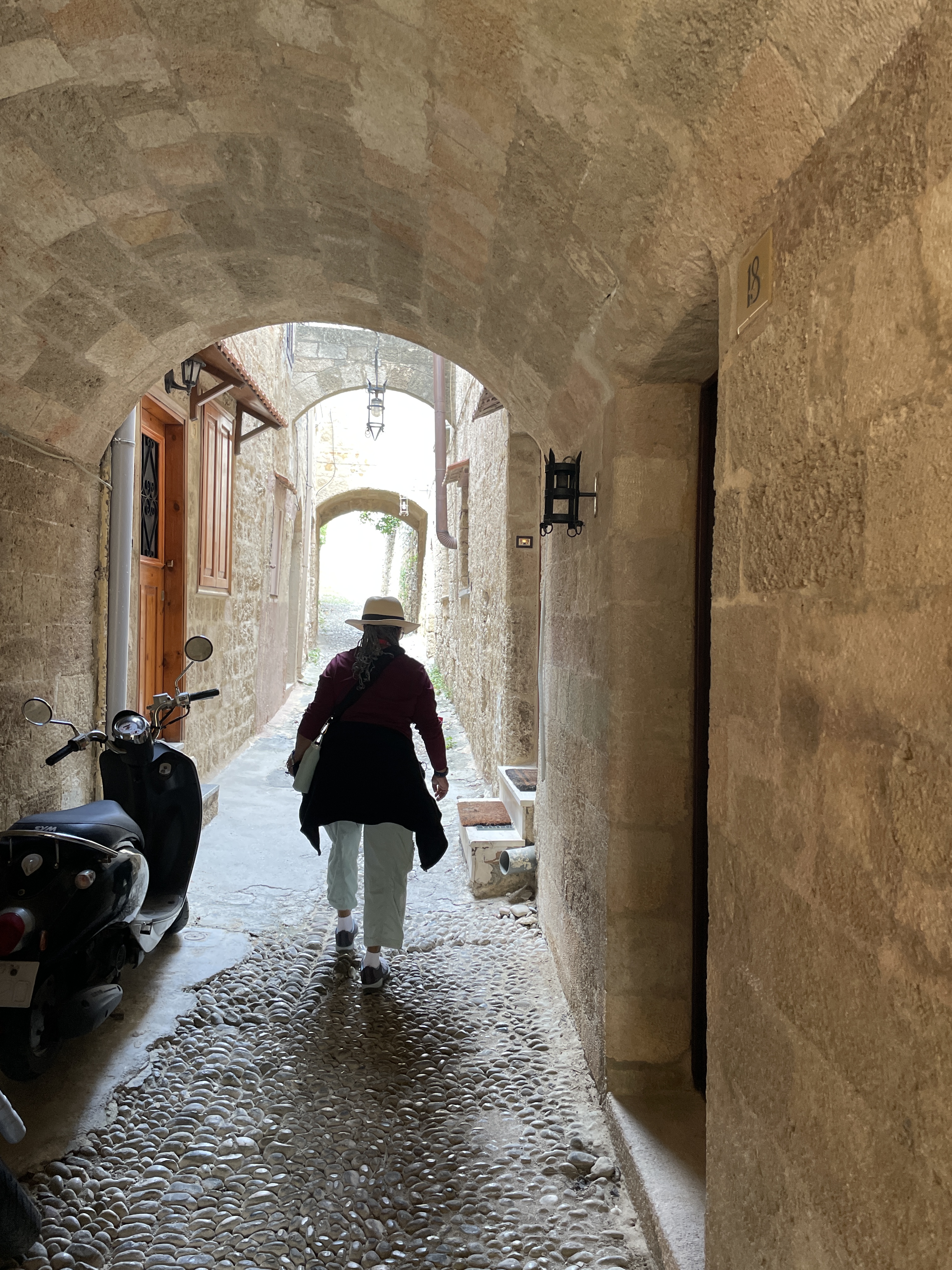 Day 6: A free day to explore the isle of Rhodes on our own. t was nice to be a little slower paced and discover sites and surprise delights. Rhodes is beautiful (as is everywhere we went.) It is named after the nymph Rhodos, the daughter of Aphrodite, and has nothing to do with the Rhodes Scholarship, although I did see several smart looking students.