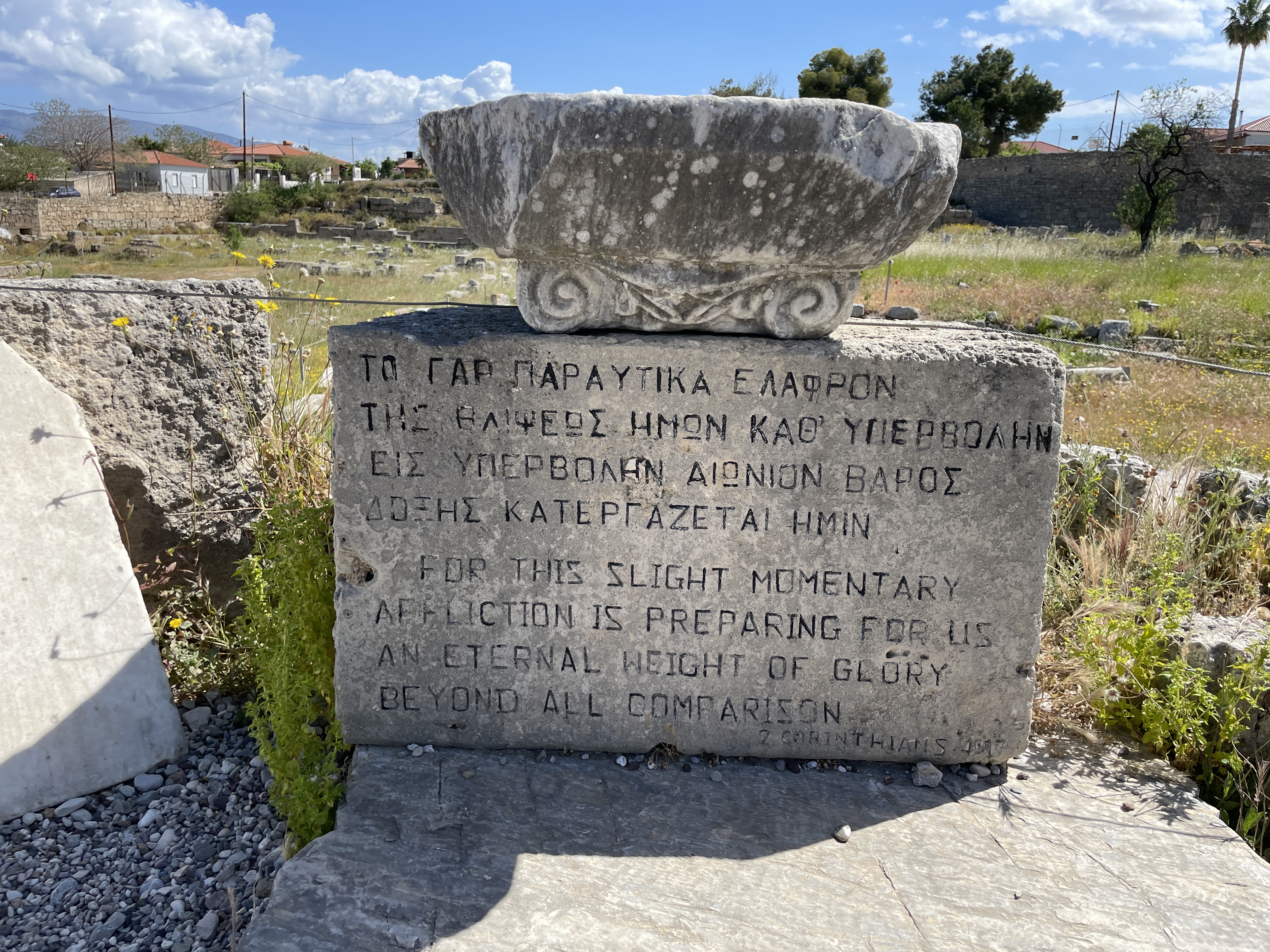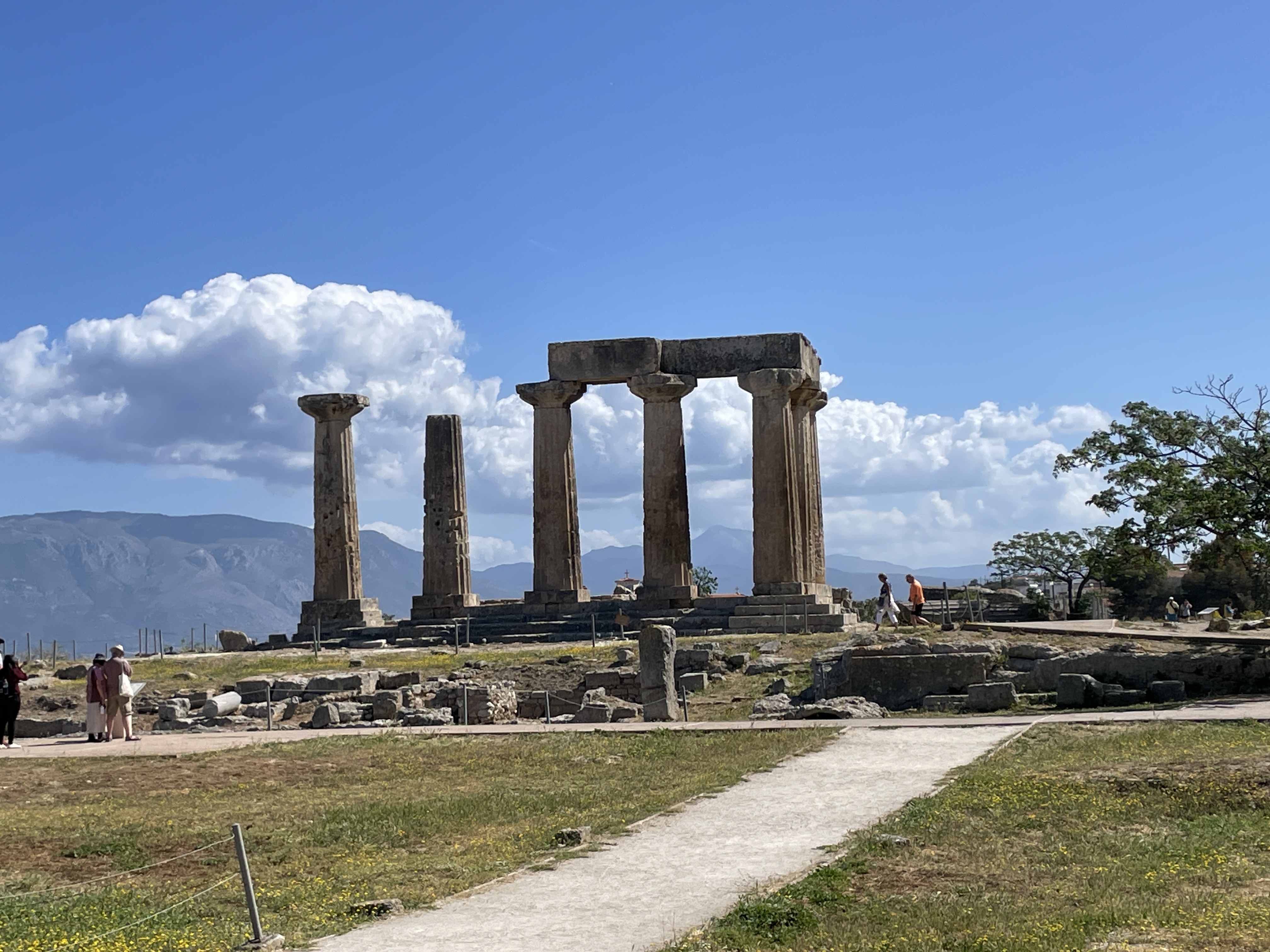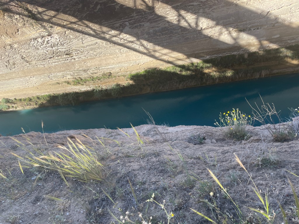 We frist toured the museum of the ancient city of Corinth. The statues were exquisite and interestingly, the columns of the buildings were Ionic, not Corinthian. Corinthian columns came later and were…not really from Corinth. Headless statues were made to depict certain types of people/royalty/gods/godesses and the heads were interhangeable. It’s genius. Make one body and place the latest important person head on it. Save the marble!