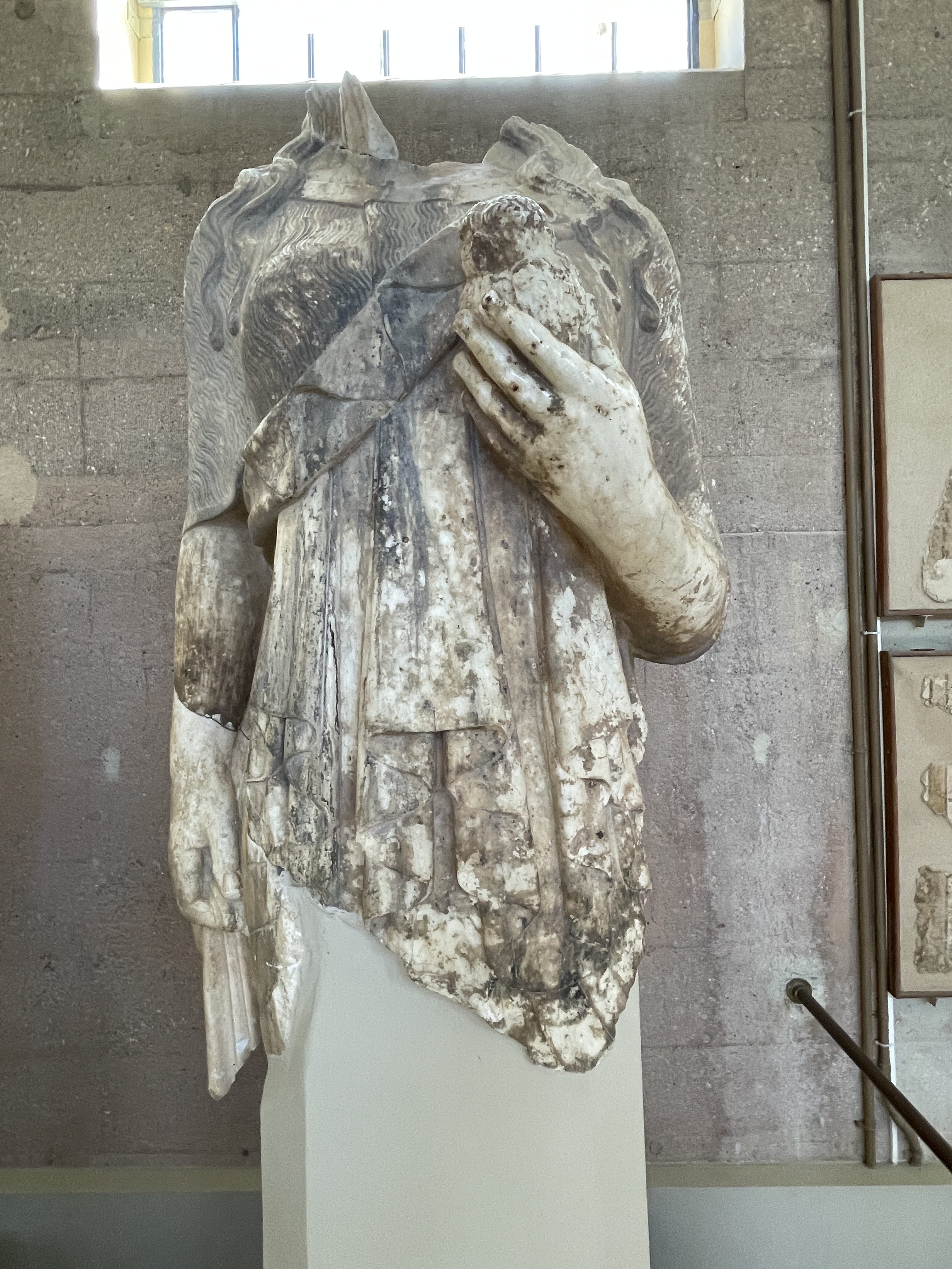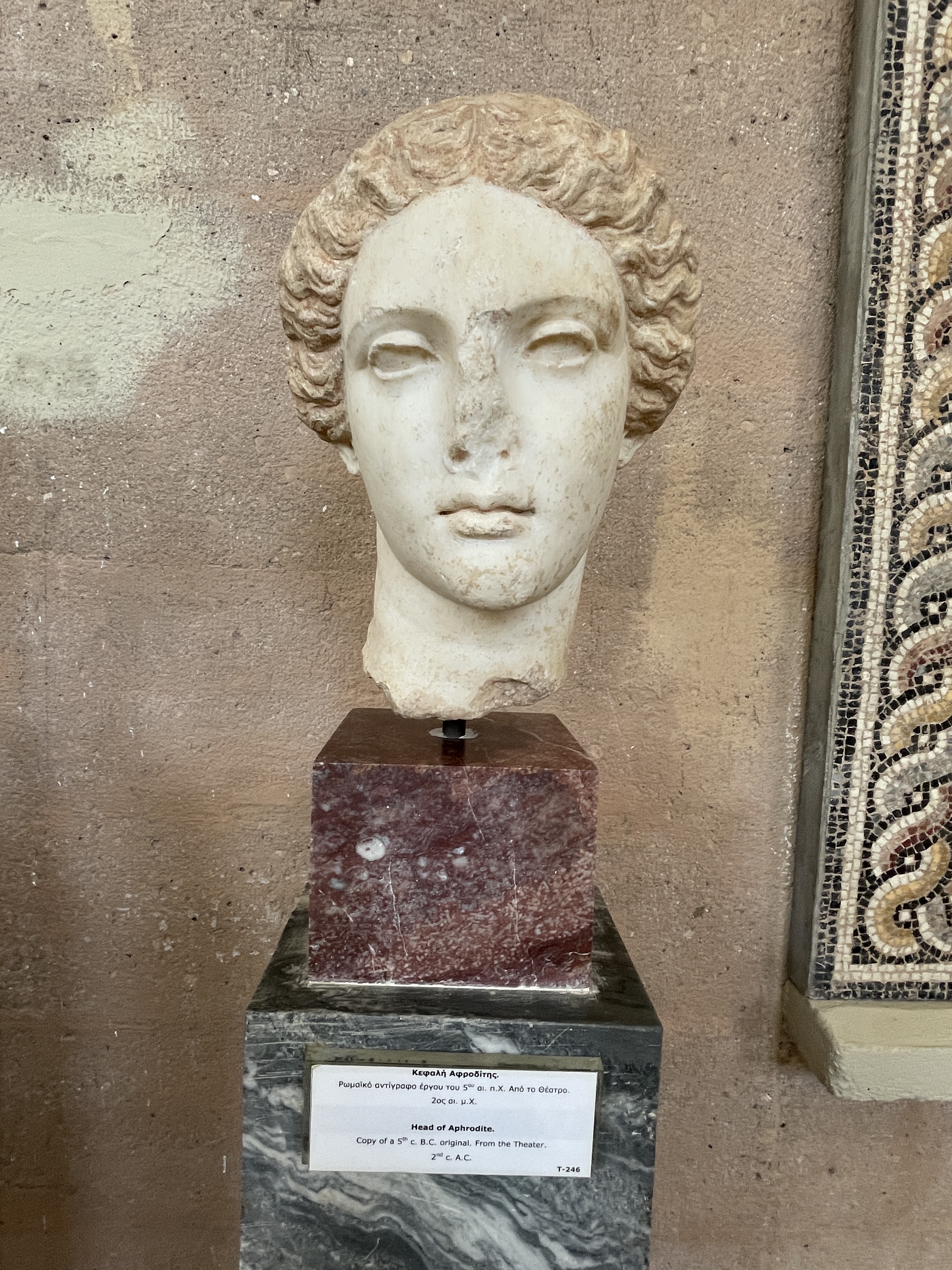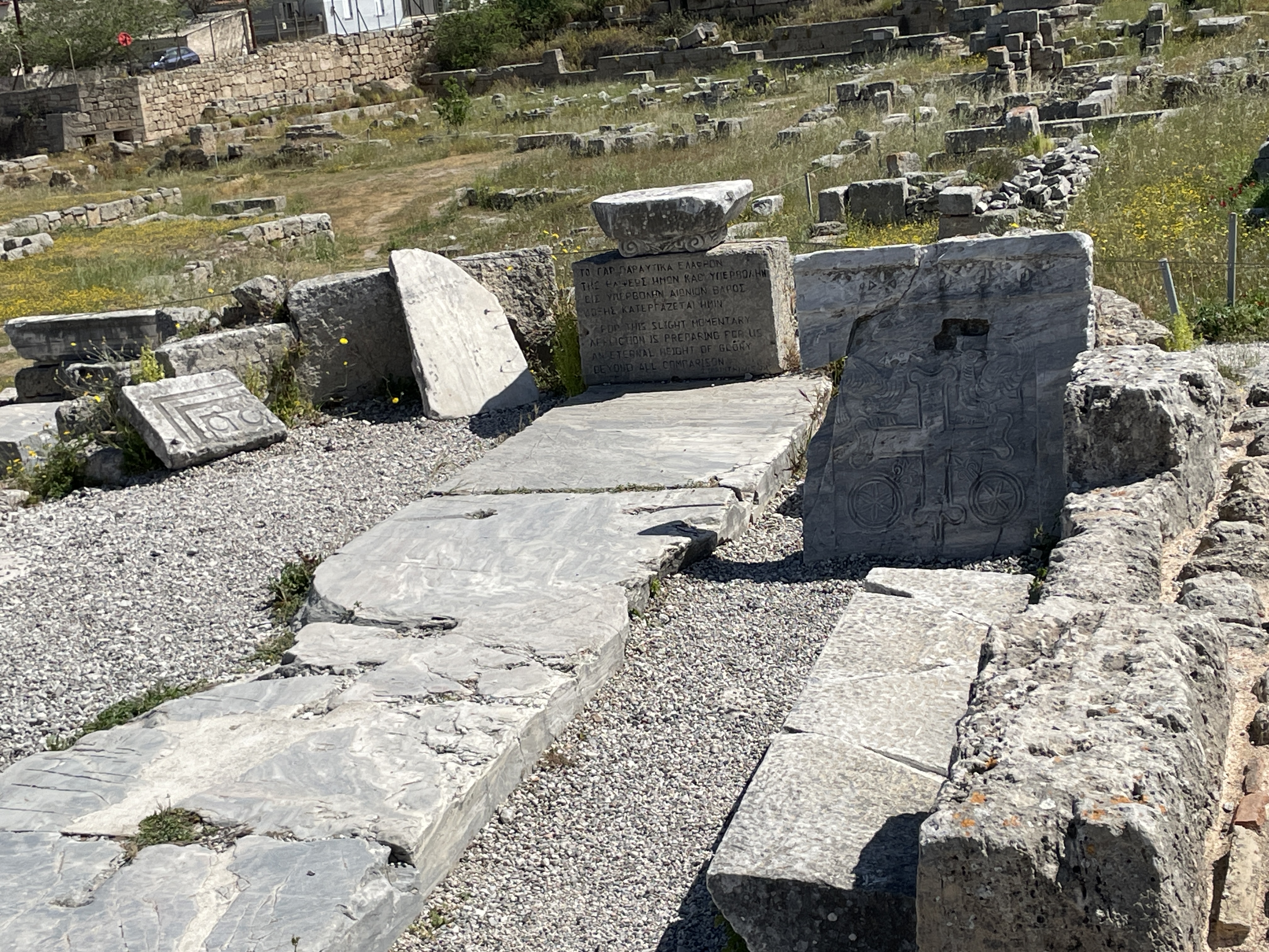 We frist toured the museum of the ancient city of Corinth. The statues were exquisite and interestingly, the columns of the buildings were Ionic, not Corinthian. Corinthian columns came later and were…not really from Corinth. Headless statues were made to depict certain types of people/royalty/gods/godesses and the heads were interhangeable. It’s genius. Make one body and place the latest important person head on it. Save the marble!