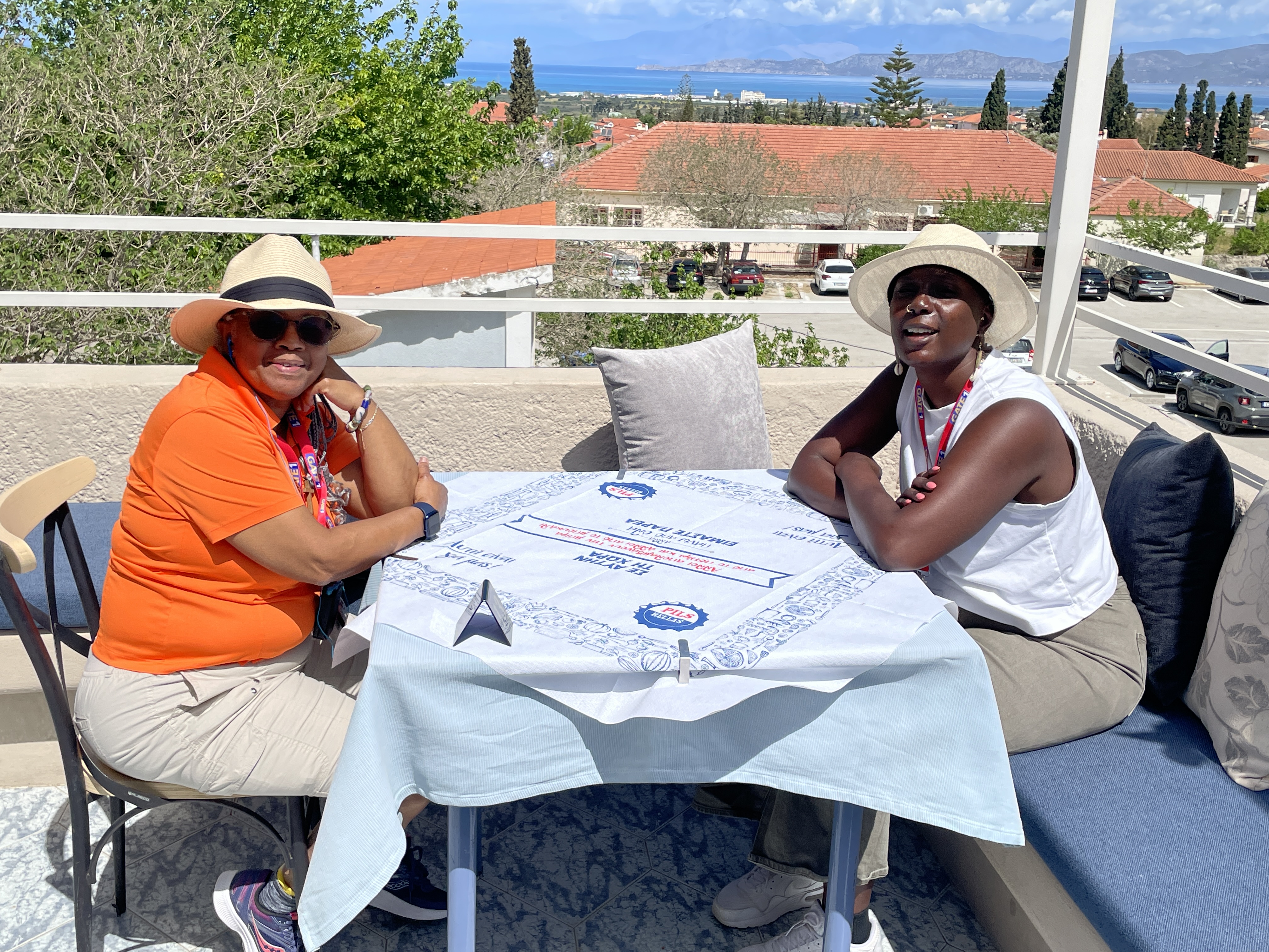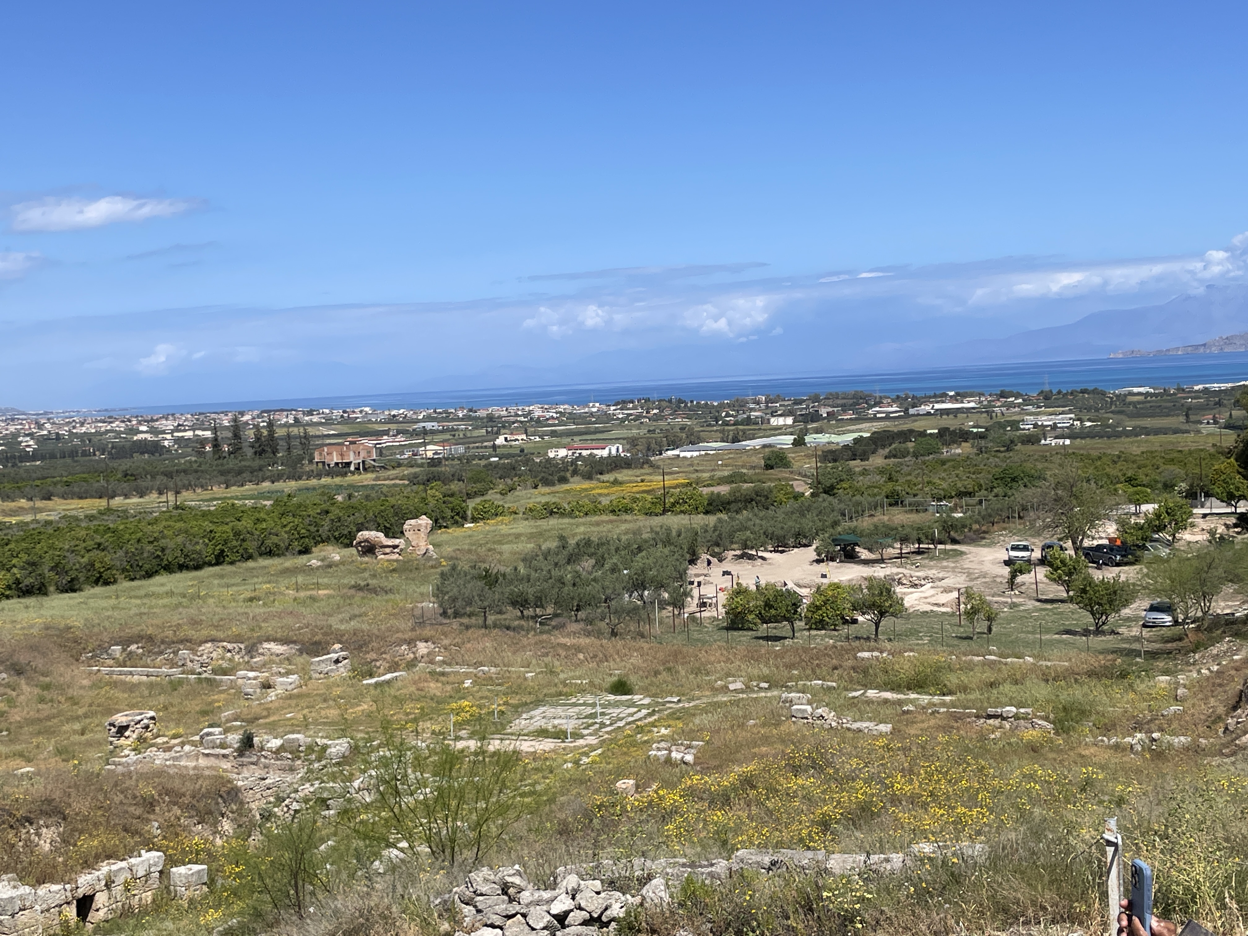 Day 9– As we drove to the Peloponnese we went by the Corinth Canal, which connects the Ionian Sea with the Aegean Sea. Construction began in 67 BCE and was completed in 1893 BCE. Makes construction in Houston look not so bad. (Ignore the finger.)