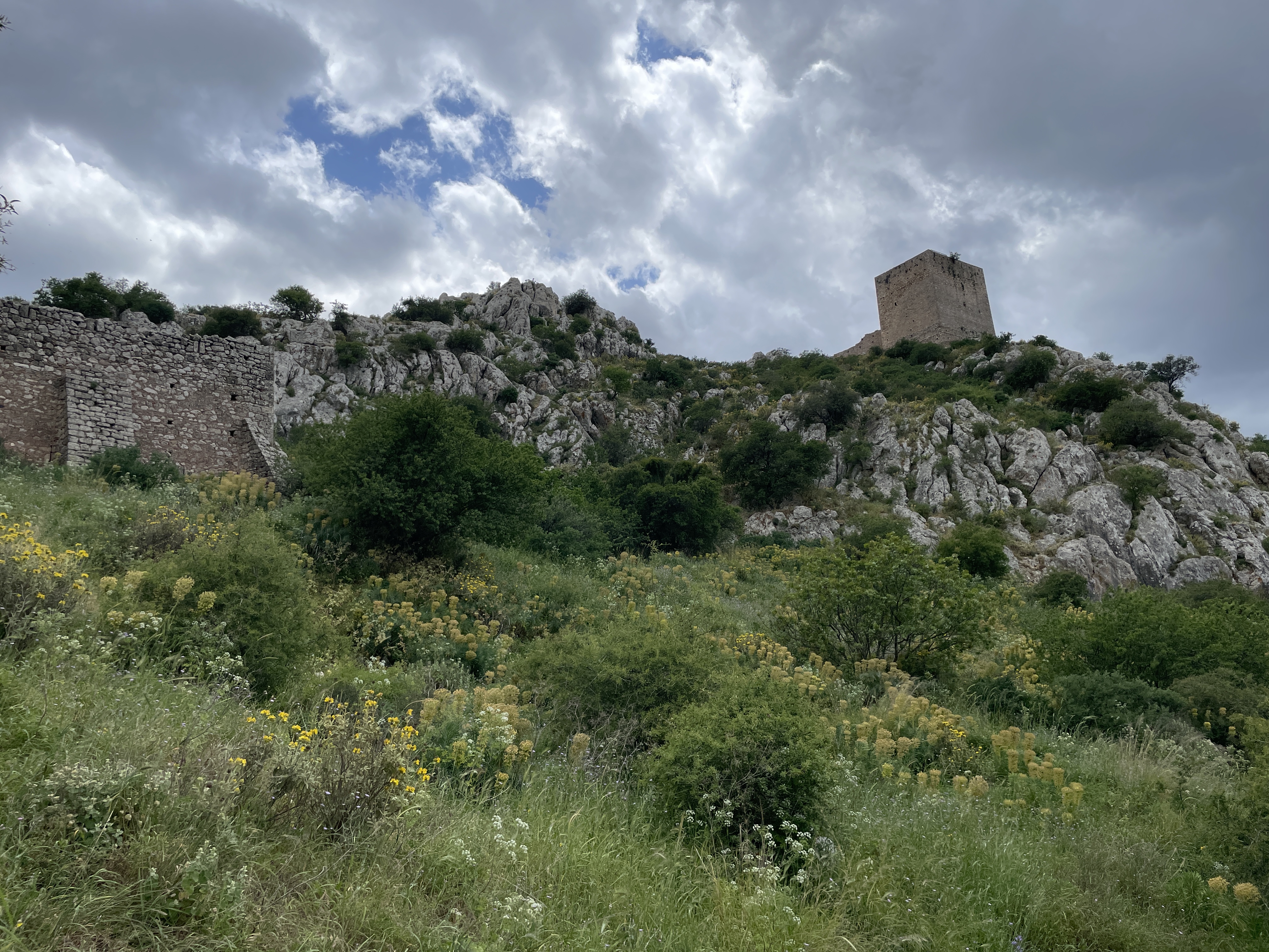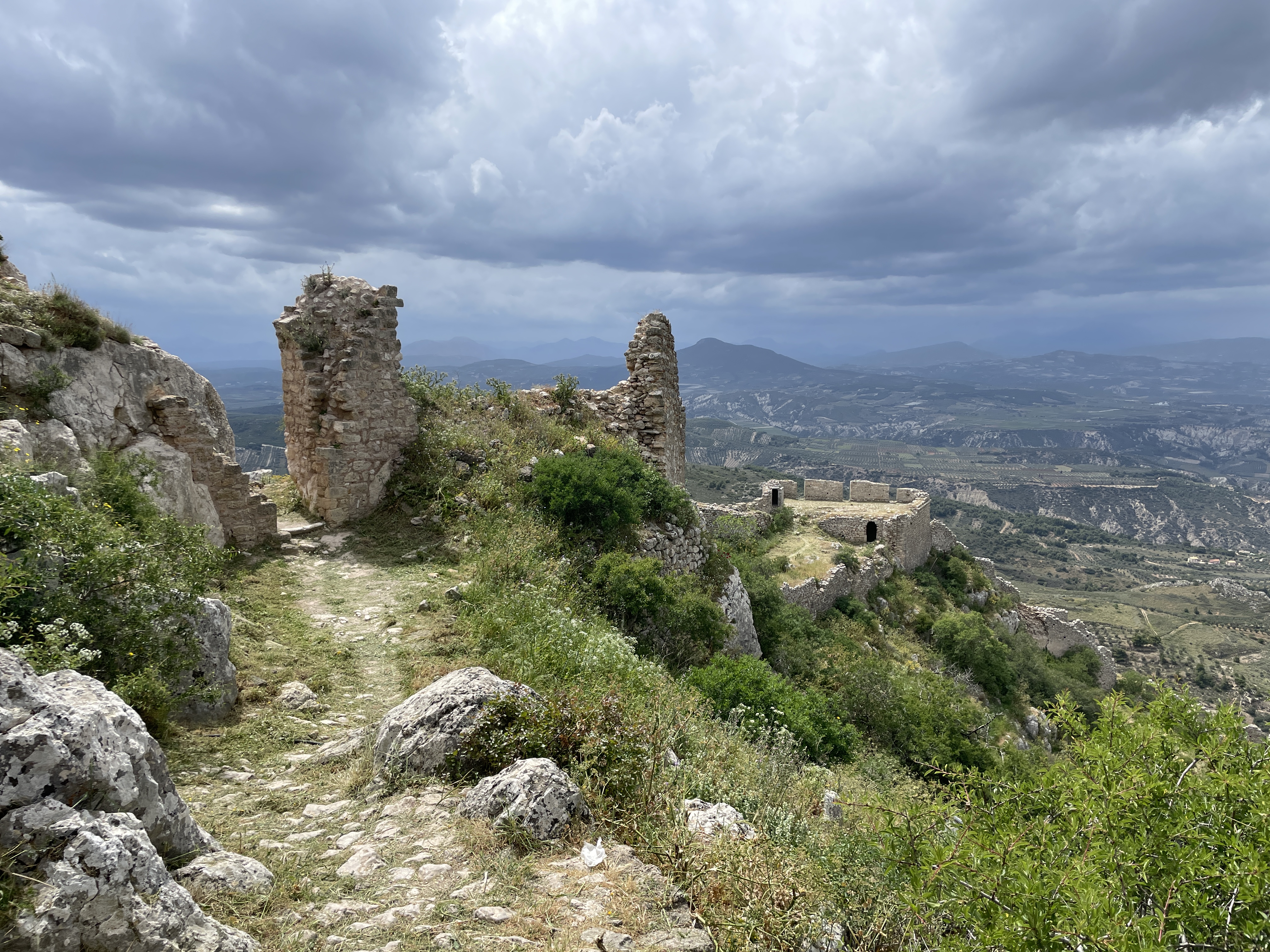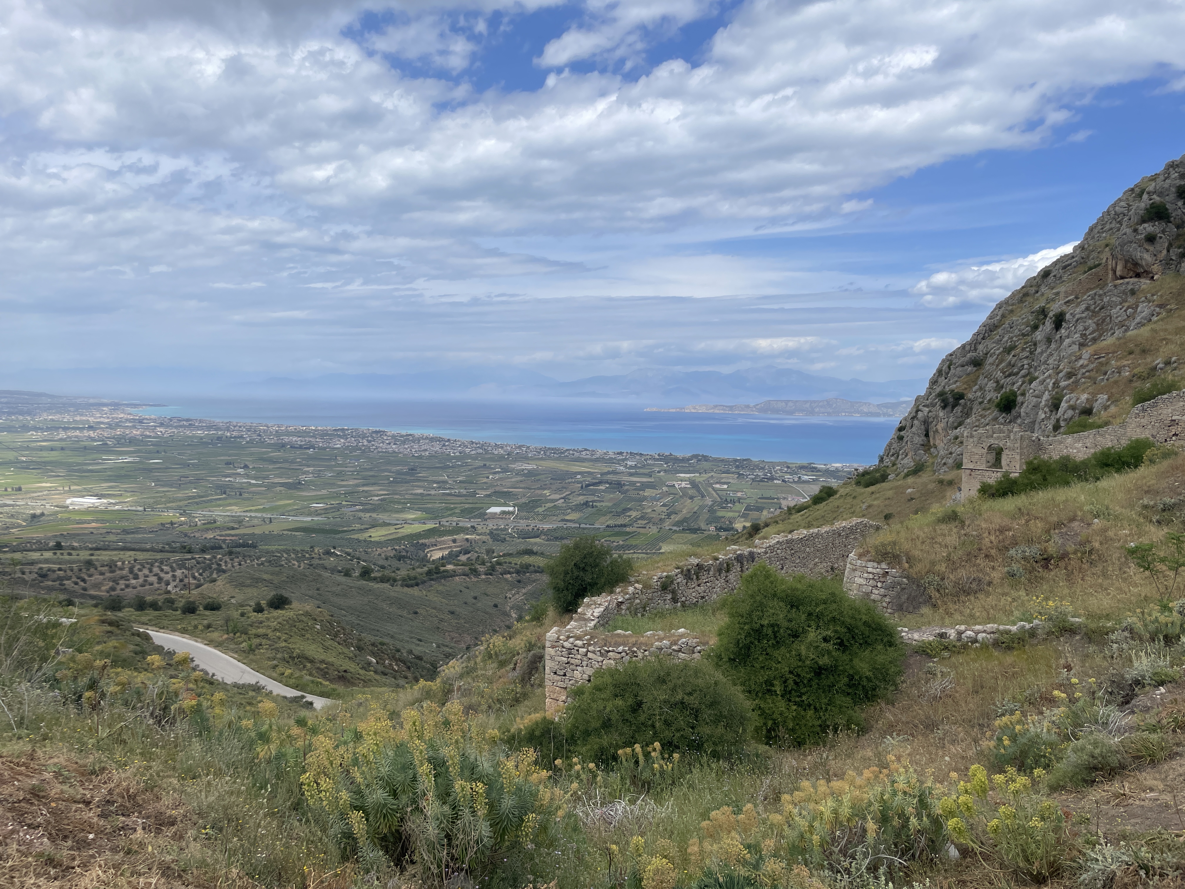 Seated about the ruins of ancient Corinth, on top of a 575 meter monolithic rock, the Acrocorinth was continuously occupied from the archaic period until the early 19th century. Its fortress, one of the most impressive ones in Greece, is built on foundations dating from the Hellenistic period (3rd century BC). It was continuously occupied until the early 19th century. At the highest summit was the Temple of Aphrodite.